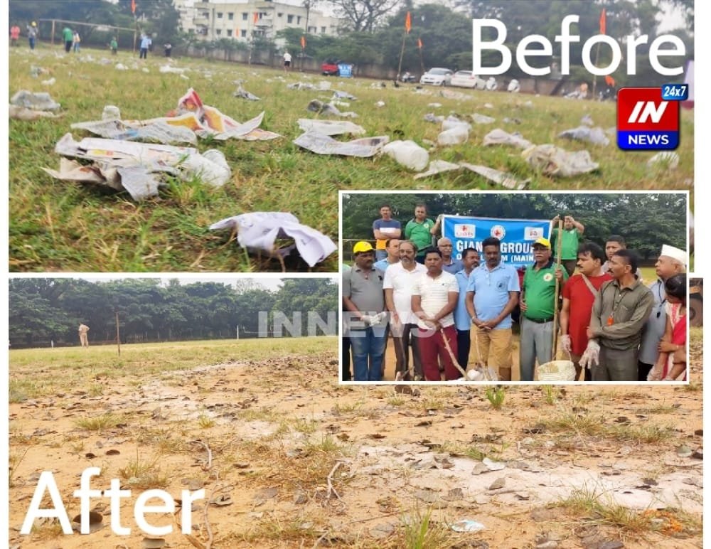 बेळगावात सीमोल्लंघन मैदानाची जायंट्स मेनकडून स्वच्छता