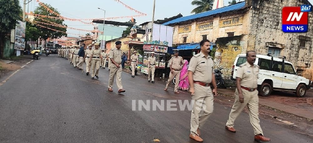 दसरा उत्सवाच्या पार्श्वभूमीवर कडोलीत पोलिसांचा रूट मार्च