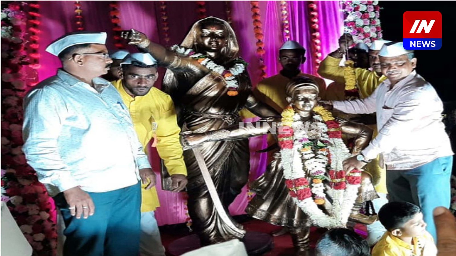 मुतगा येथे राजमाता जिजाऊ व बाल शिवाजी पुतळ्याची मिरवणूक