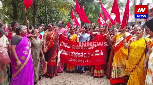 ग्रॅच्युइटीसाठी बेळगावात अंगणवाडी कार्यकर्त्यांची निदर्शने