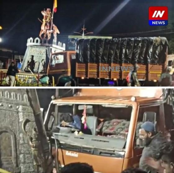 चन्नम्मा पुतळ्याच्या चौथऱ्याला भरधाव ट्रकची धडक; पुतळा सुरक्षित