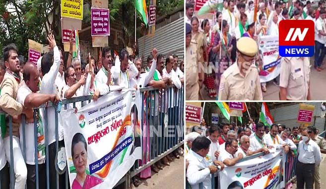 राहुल गांधींच्या ईडी चौकशीच्या निषेधार्थ बेळगावात जिल्हा काँग्रेसची निदर्शने