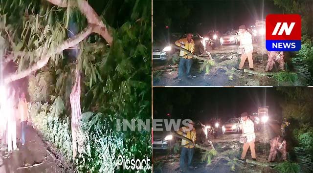 Tree falls due to heavy rains in Vengurla road : बेळगावला पावसाने झोडपले; हिंडलगा गणपतीजवळ रस्त्यात कोसळले झाड