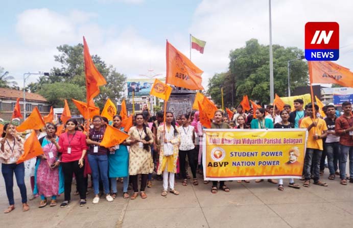 ABVP protests avoiding high fees, donation in school, college : बेळगावात वाढीव शुल्क, डोनेशन विरोधात अभाविपची निदर्शने