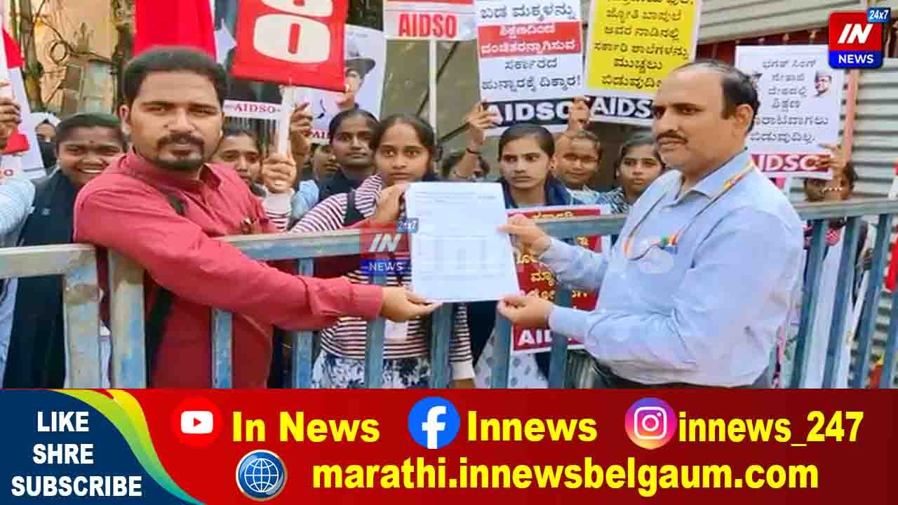 सरकारी शाळा विलीनीकरण विरोधात बेळगावात ‘एआयडीएसओ’चे आंदोलन