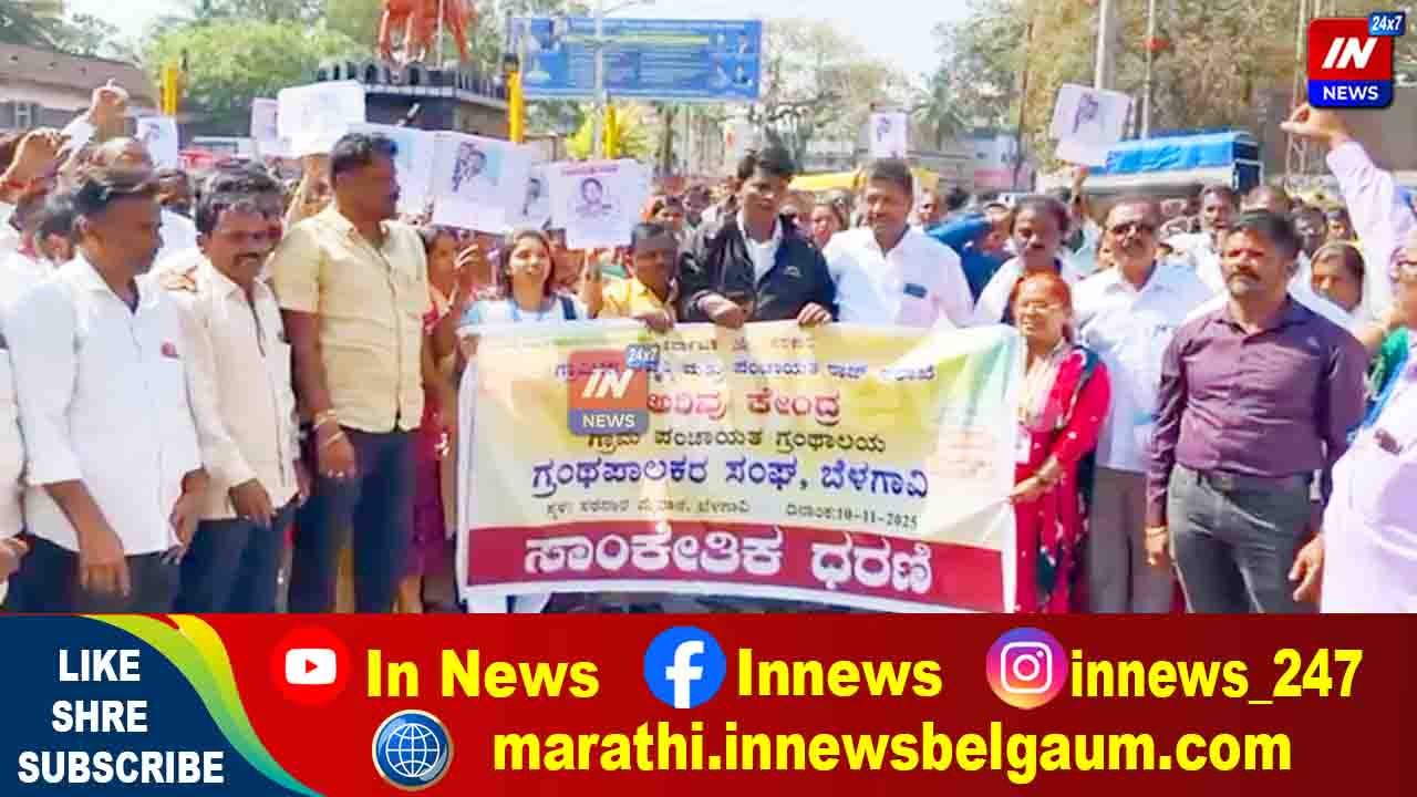 बेळगाव : सार्वजनिक ग्रंथालय ग्रामीण कर्मचाऱ्यांचे आंदोलन