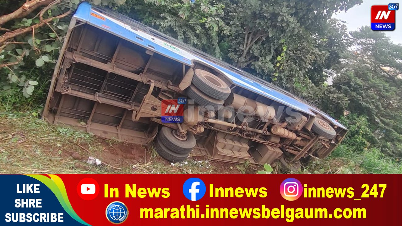 स्टिअरिंग लॉक झाल्याने बस खड्ड्यात; बेळगावमधील कवेम्पू नगरात घडली घटना
