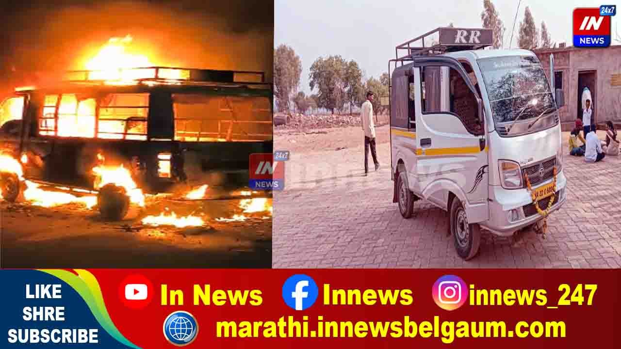 बेळगावात टाटा मॅजिकला आग; ५ लाखांचे नुकसान