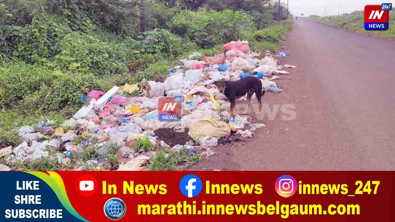 हलगा येथील सर्व्हिस रोडवर कचऱ्याचे साम्राज्य