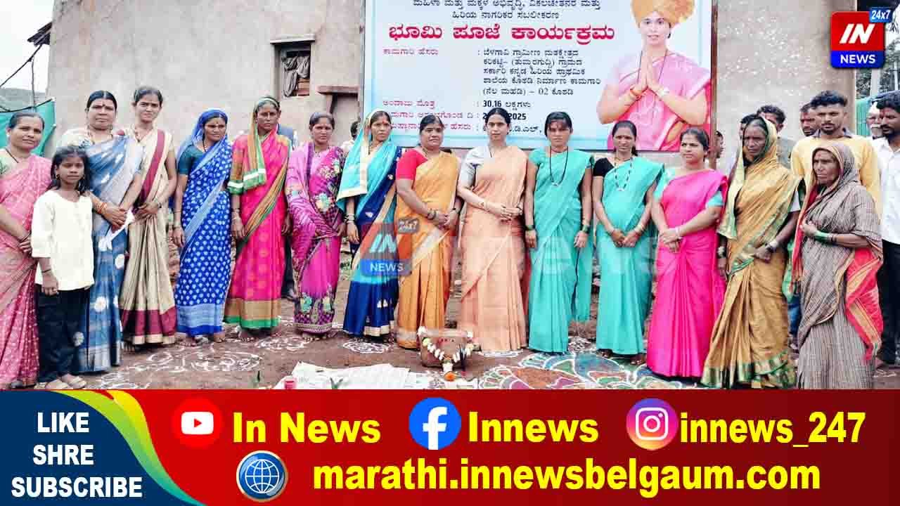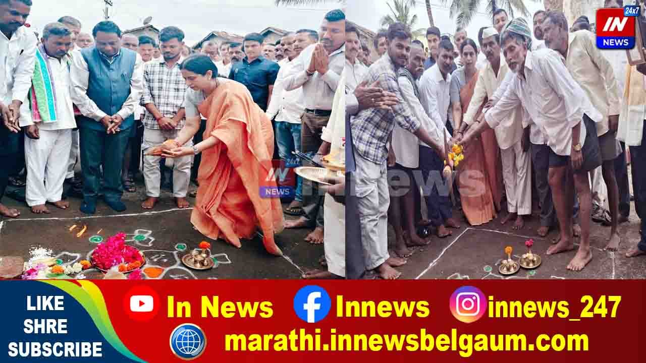 करिकट्टी गावात दोन वर्गखोल्यांच्या बांधकामासाठी लक्ष्मी हेब्बाळकर यांच्या हस्ते भूमिपूजन