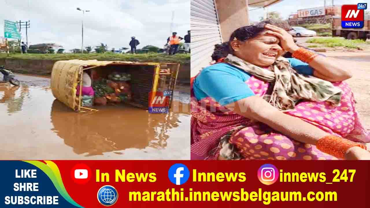 बेळगावच्या भाजी मार्केटमध्ये मिनी टेम्पो उलटला; व्यापाऱ्यांचे मोठे नुकसान