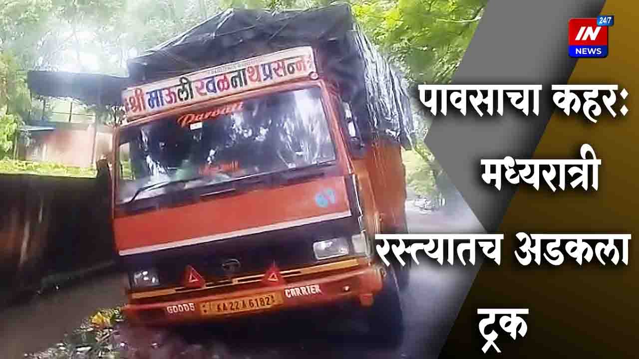 बेळगावात पावसाचा कहर: विश्वेश्वरय्या नगरात मध्यरात्री रस्त्यातच अडकला ट्रक