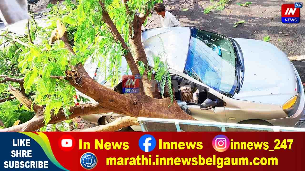 बेळगावात मुसळधार पावसामुळे कारवर झाड कोसळले