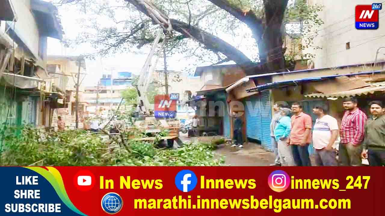 बेळगाव: धोकादायक झाड हटवले, वडापाव सेंटरवरील संकट टळले