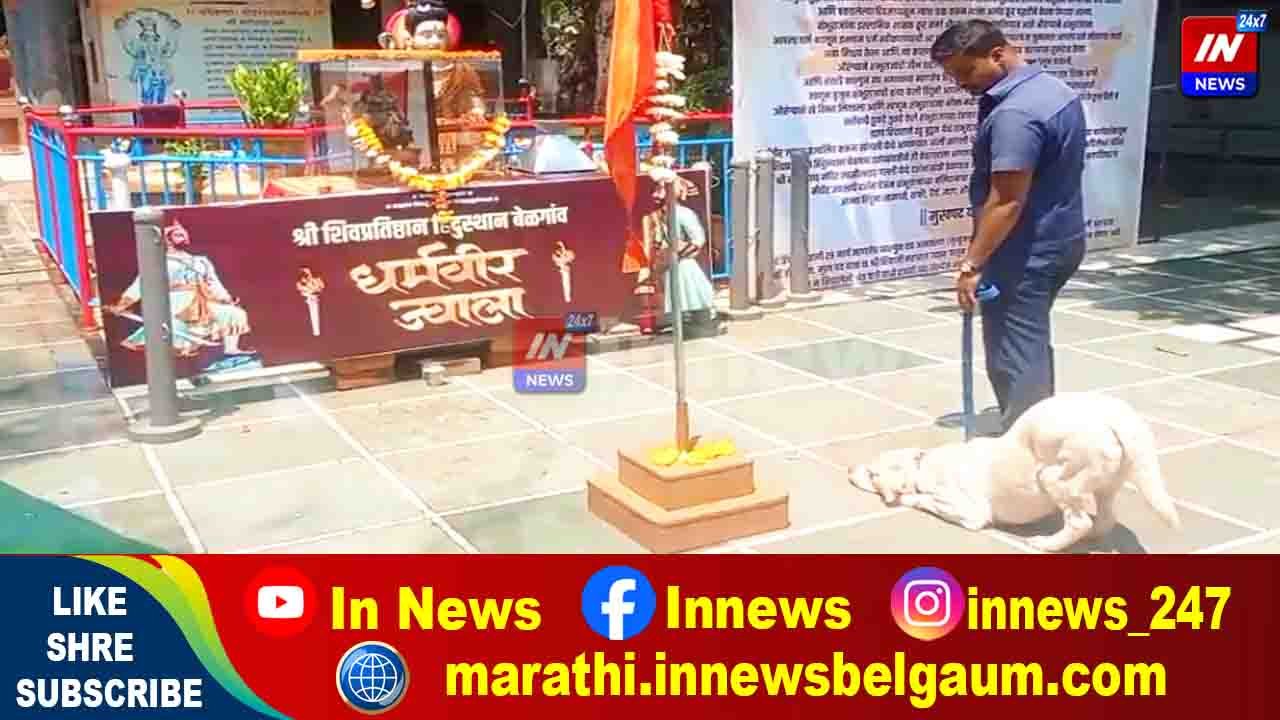 श्वानाने केले ध. छत्र. संभाजी महाराजांच्या प्रतिमेला अभिवादन