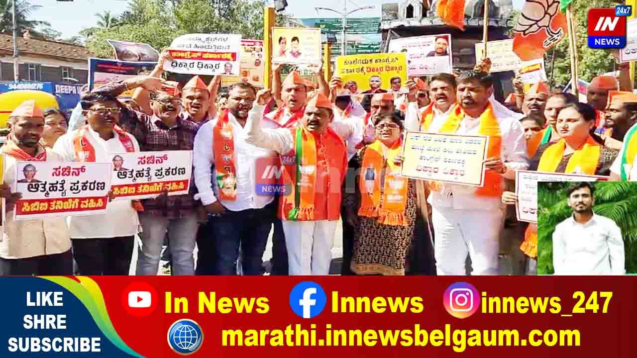 कंत्राटदार सचिन आणि एसडीए रुद्रण्णा आत्महत्या प्रकरणाची सीबीआय चौकशी व्हावी बेळगावात भाजपची निदर्शने