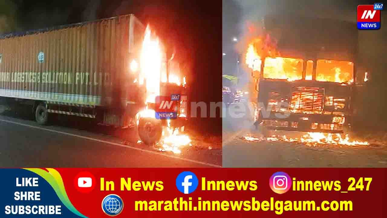 विजयपूर राष्ट्रीय महामार्गावर कॅटरने घेतला पेट
