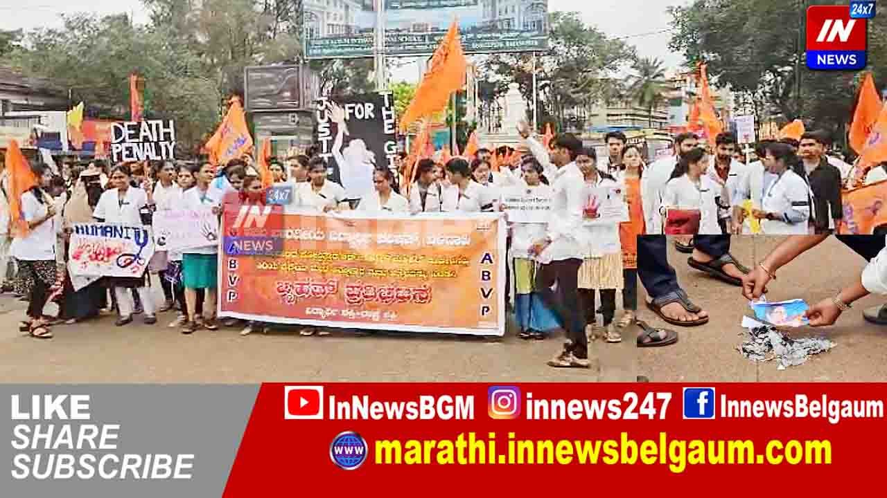 न्याय न देणाऱ्या दीदींनी राजीनामा द्यावा; कोलकाता घटनेचा निषेध करण्यासाठी अभाविपच्या वतीने बेळगावात निदर्शने