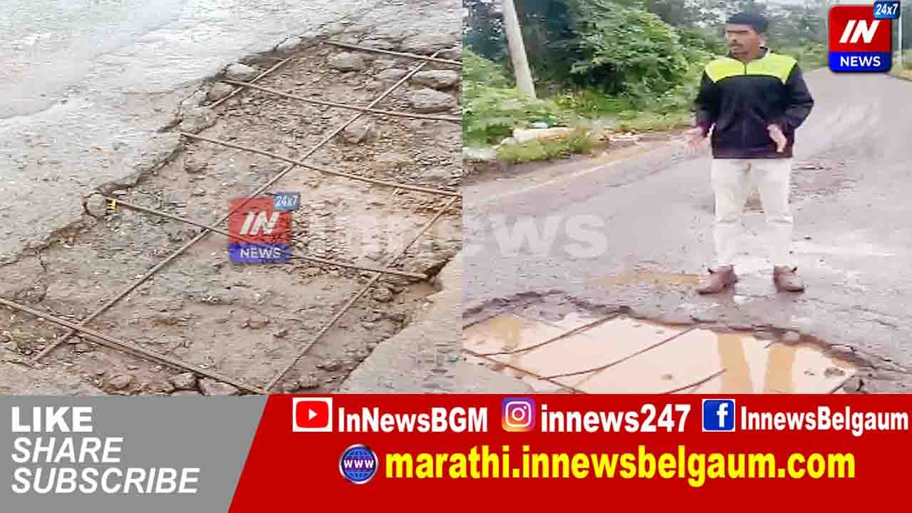 हंदिगनूर पुलावरील रस्त्यावर खड्डा
