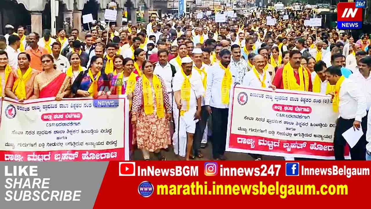 विविध मागण्यांच्या पूर्ततेसाठी बेळगावमध्ये शिक्षकांचा भव्य मोर्चा
