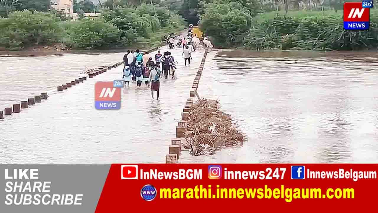 रामदुर्गचा जुना पूल झाला जलमय : वाहत्या पाण्यातून माणसे आणि वाहनांची धोकादायक वाहतूक