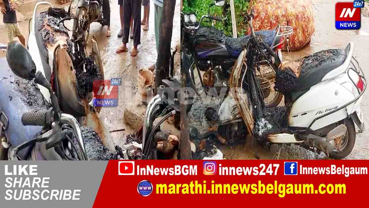 घरासमोर उभ्या असलेल्या दुचाकींना आग