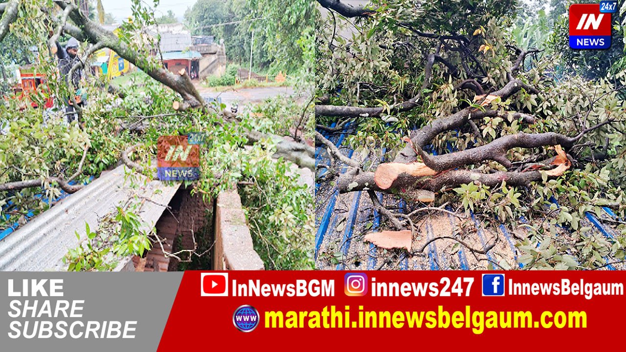 बाची येथे घरावर झाड पडून लाखो रुपयांचे नुकसान