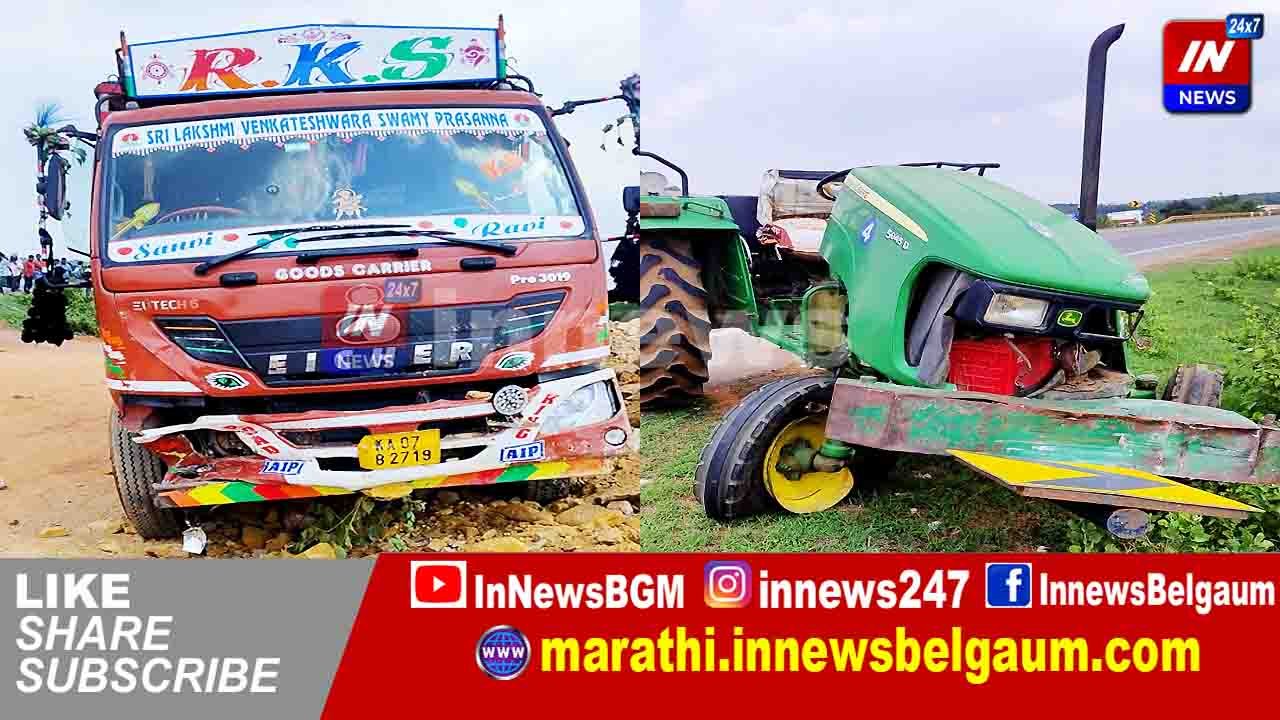 ट्रॅक्टर लॉरीची समोरासमोर धडक. :ट्रॅक्टर चालक गंभीर जखमी