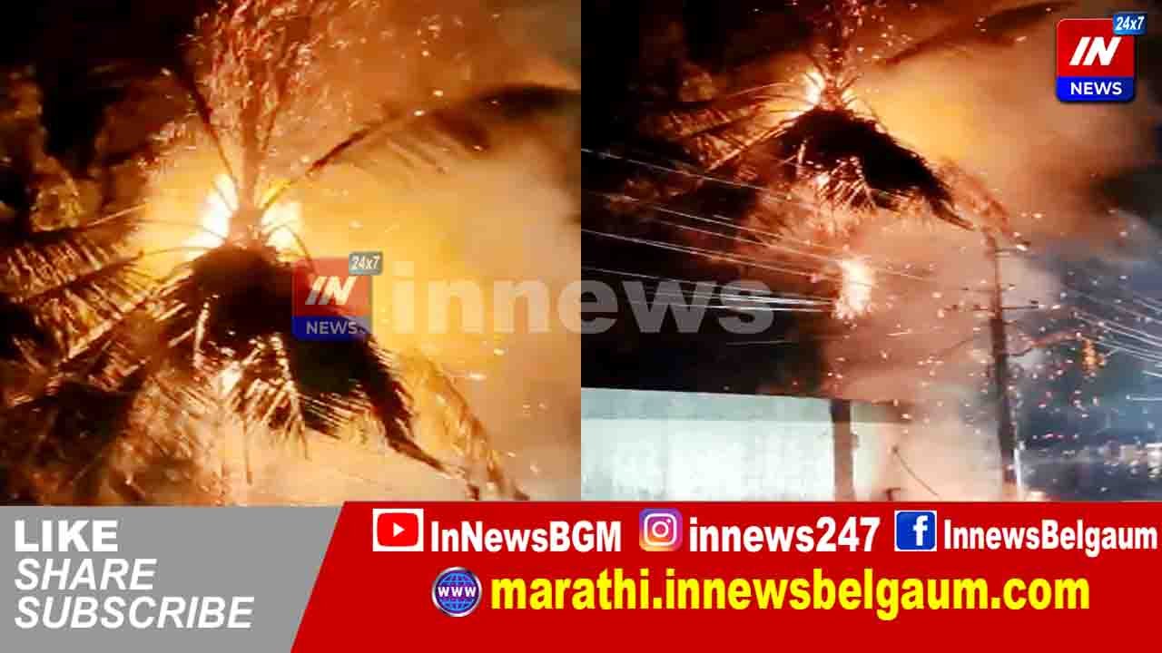 नारळाच्या झाडाला शॉर्टसर्किटमुळे आग