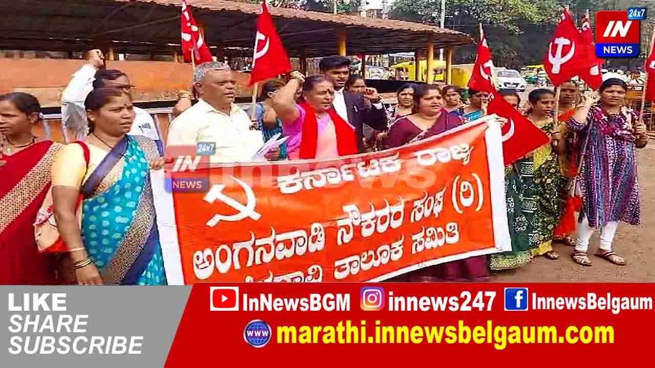 बेळगावात अंगणवाडी मदतनीस महिलेवर हल्ल्याच्या निषेधार्थ निदर्शने