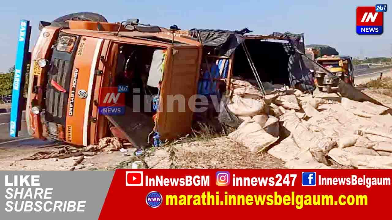 लॉरी पलटी होऊन दूध पावडरच्या पिशव्यांचे नुकसान