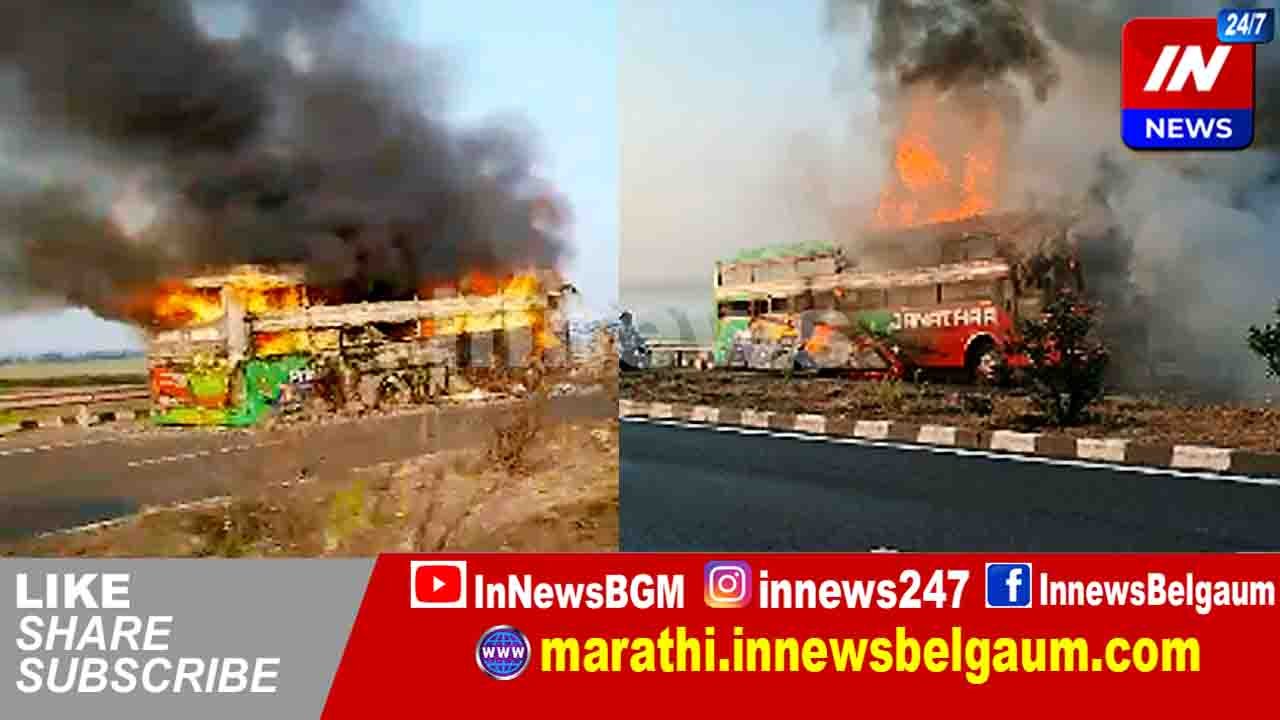 चालत्या बसचा टायर फुटला : बस जळून खाक