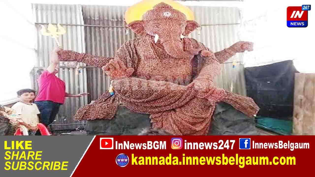 बेळगावात रुद्राक्षापासून साकारली 12 फूट उंचीची सुंदर गणेश मूर्ती