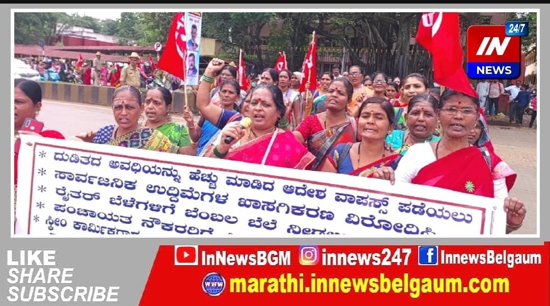 केंद्राच्या विरोधात बेळगावात कामगार, रयत संघटनांची निदर्शने