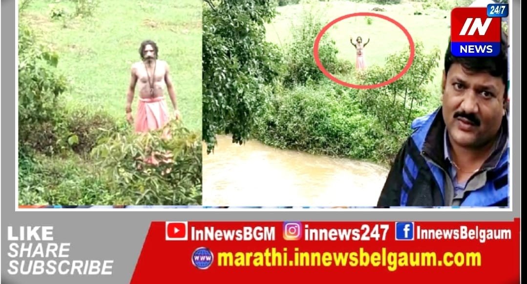 कामावरून काढल्यामुळे हब्बनहट्टी गावात पुजाऱ्याचे नदीपात्रात आंदोलन