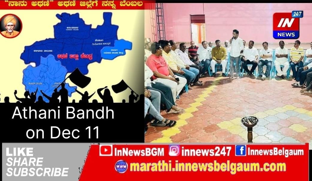 अथणी जिल्हा आंदोलनाला उत्स्फूर्त पाठिंबा : ऐच्छिक अथणी बंदला चांगला प्रतिसाद