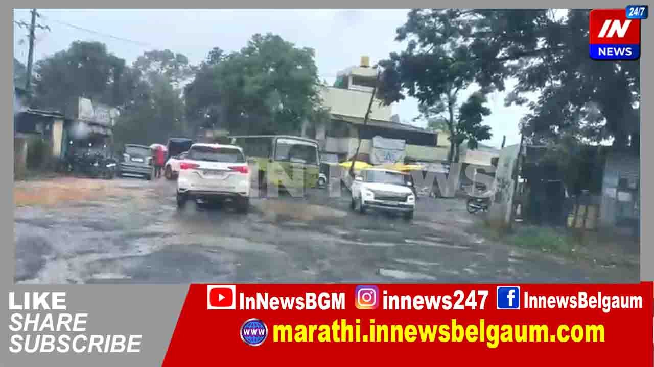 रुमेवाडी क्रॉसजवळ रस्त्याची अक्षरशः चाळण ,तातडीने रस्त्याची दुरुस्ती करण्याची मागणी