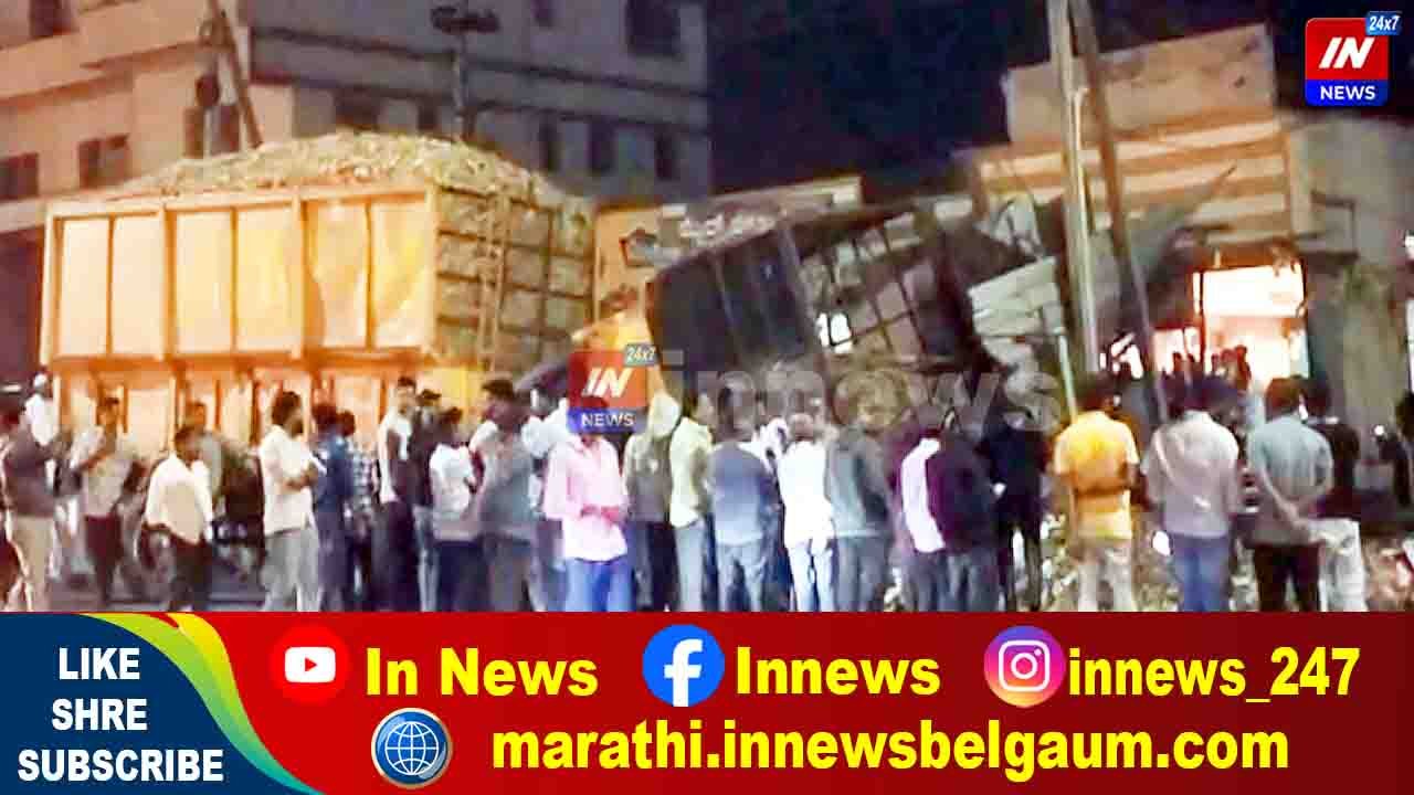 बैलहोंगलमध्ये उसाचा ट्रॅक्टर शिरला थेट हॉटेलमध्ये!