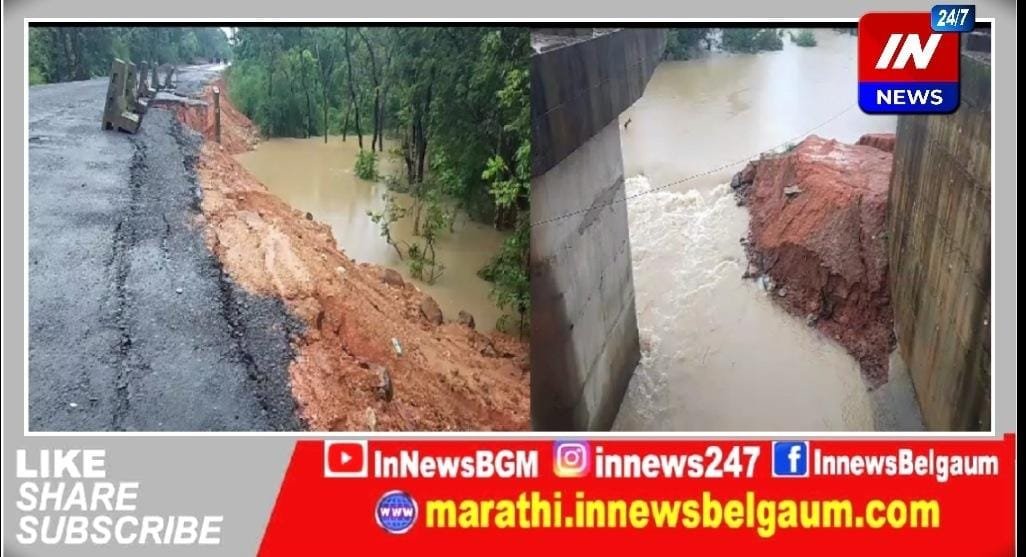 पावसामुळे लोंढा मार्गावर मोहिशेतनजीक नव्याने बांधलेला ब्रिज खचला