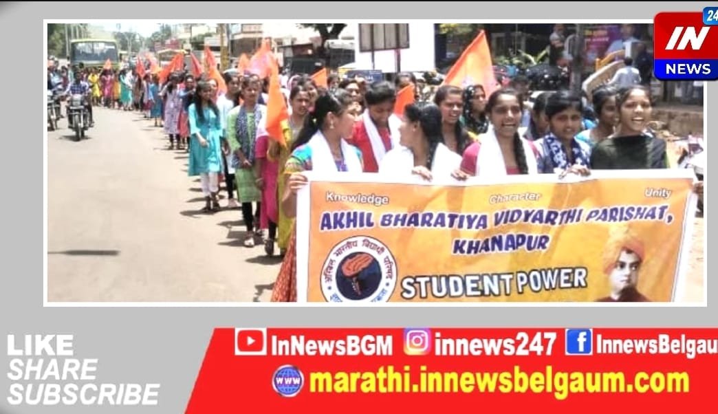 कॉलेजमध्ये मूलभूत सुविधांच्या मागणीसाठी खानापुरात अभाविपची निदर्शने