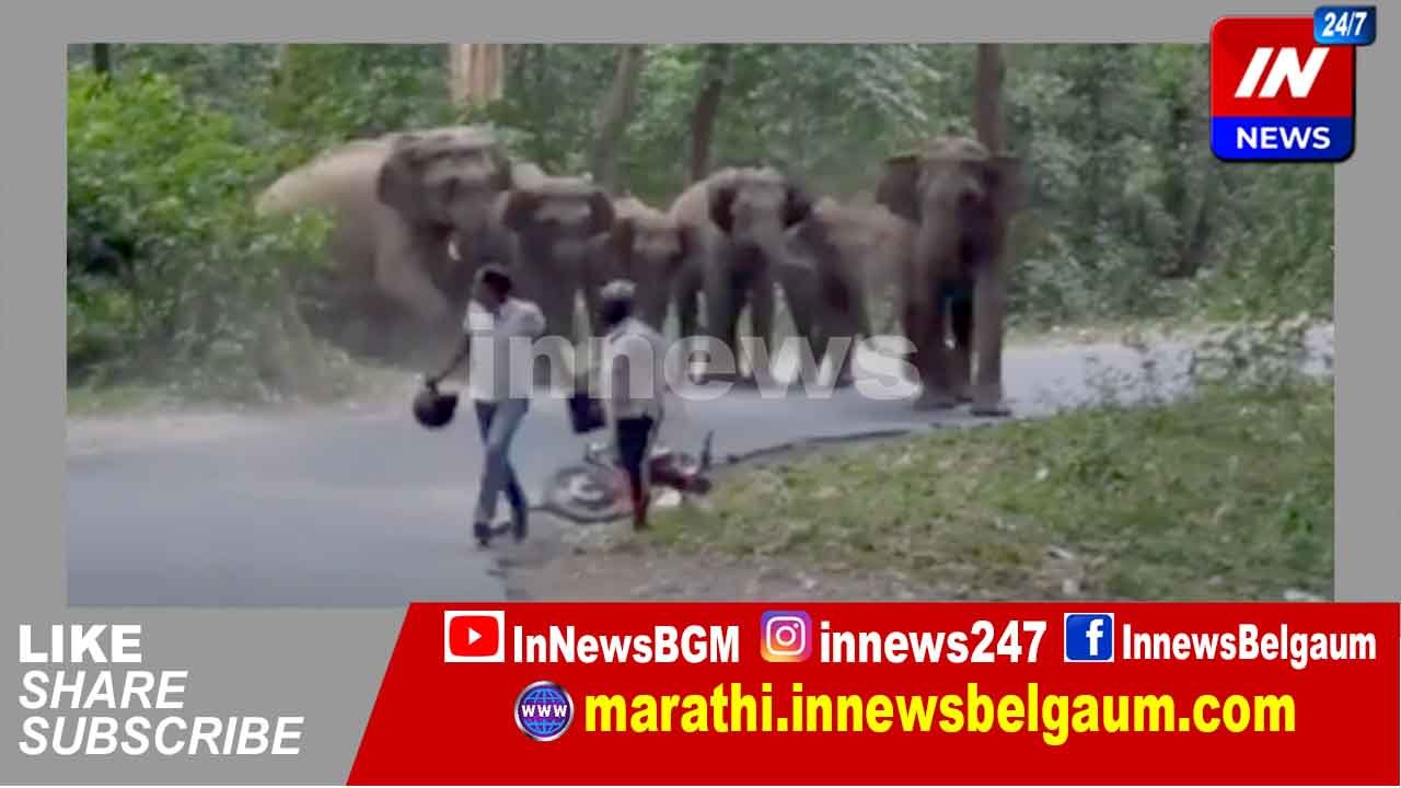 गजराजांचा कळप पाहून दुचाकीस्वारांची झाली पळता भुई थोडी !