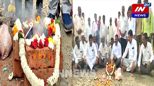 अथणीत रस्ता दुरुस्तीसाठी रस्त्यात होमहवन करून आंदोलन