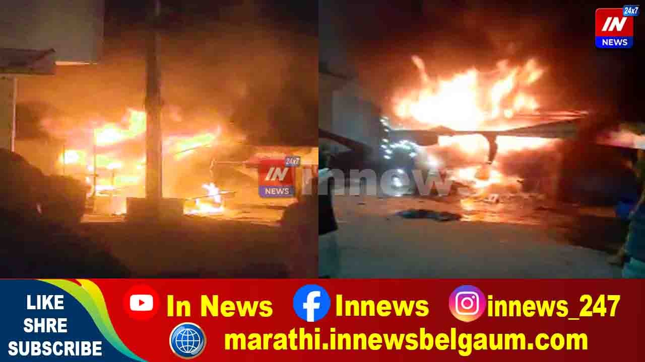 निपाणीमध्ये टायरच्या दुकानाला लागलेल्या आगीत लाखो रुपयांचे नुकसान