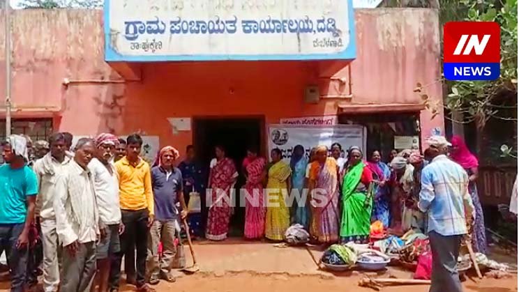 Protesting Nerega workers Gherao daddi Gram panchayat: हुक्केरी : नरेगा कर्मचाऱ्यांनी घातला दड्डी ग्रामपंचायतीला घेराव