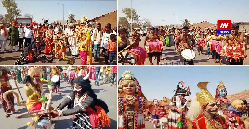 वीरशिरोमणी बेळवडी मल्लम्मा उत्सवाचा शुभारंभ कला पथकांच्या उपस्थितीत भव्य मिरवणूक