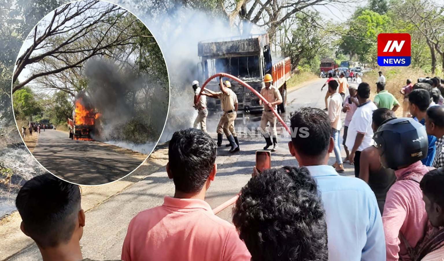 खानापूर-बिडी रस्त्यावर ‘बर्निंग ट्रक’चा थरार