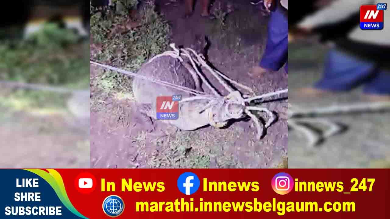 चिक्कोडी : ग्रामस्थांनी मगरीला पकडून बांधले, वनविभागाकडे केले सुपूर्द