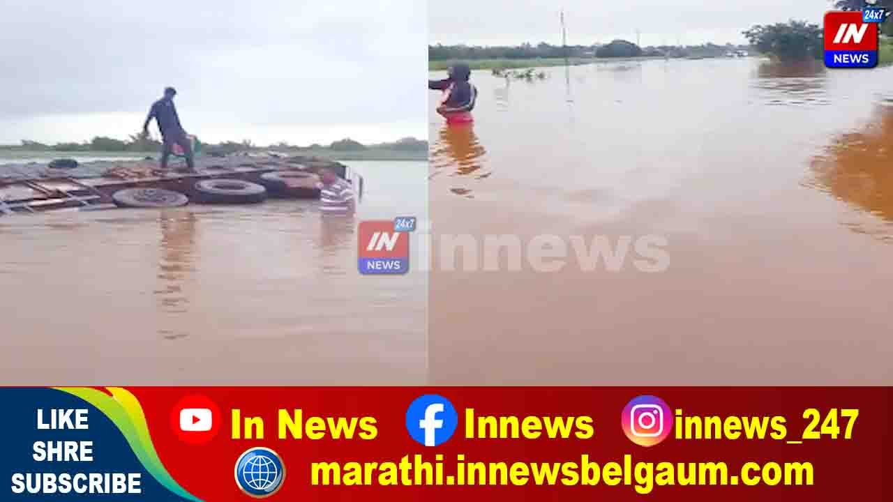 कोल्हापूरमध्ये पुराच्या पाण्यात अडकला ट्रक, रात्रभर ड्रायव्हर आणि क्लिनरचा जीव टांगणीला